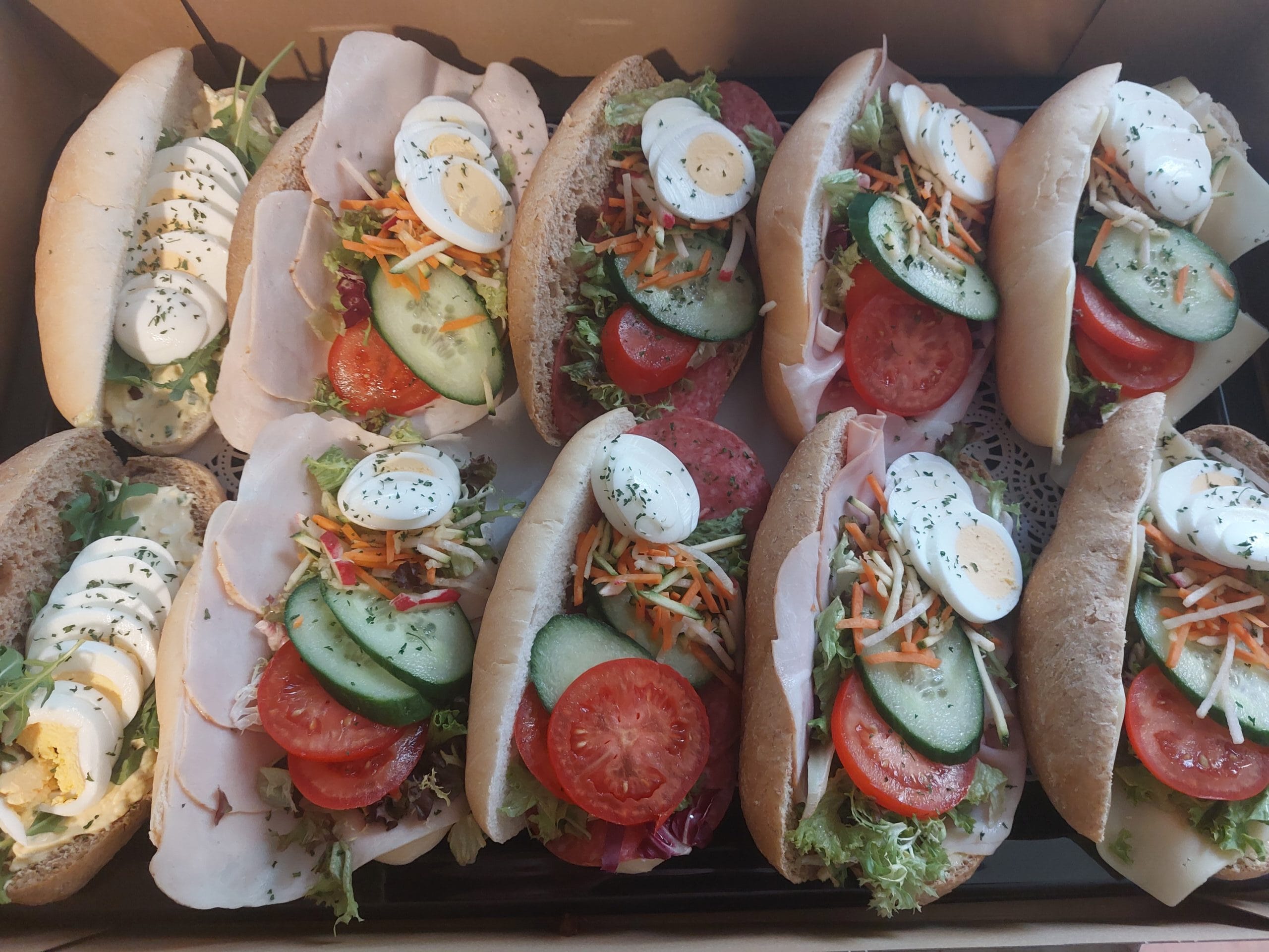 Mix van 10 harde luxe belegde broodjes deze maand bestaande uit: Gezond, Eisalade-bacon, Filet Americain, kip/pesto/rucola/pijnboompitjes en  Brie speciaal.